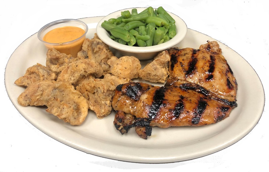 Marinated Grilled Chicken...............$14.79 Our 7oz Grilled Chicken Breast Marinated Overnight in our House Marinade. Choice of Potato, Rice or Vegetable Medley & Salad Bar