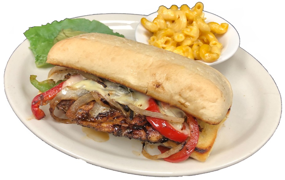 Marinated Chicken Philly..................$13.99 Marinated Grilled Chicken Tips, Peppers, Onions, Mushrooms & Swiss Cheese on a Hoagie – Served with One Side & Salad Bar